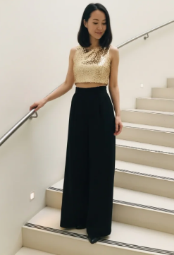 Wide-leg trousers bring some elegance and movement to the look. Perfect for dressy club nights or ringing in the New Year with style.