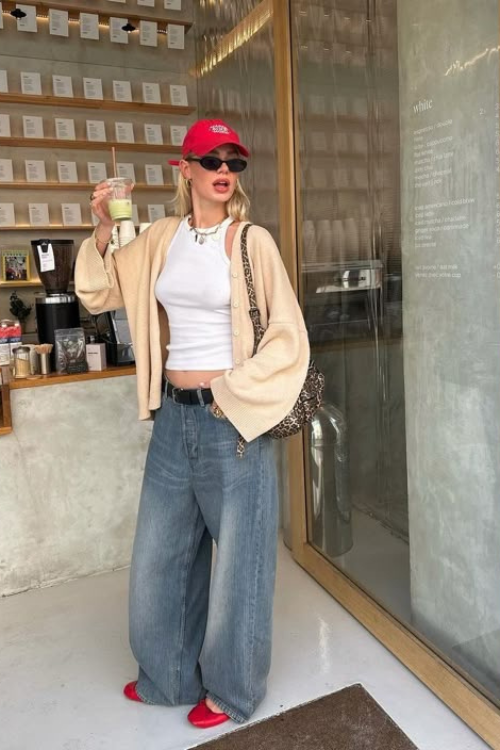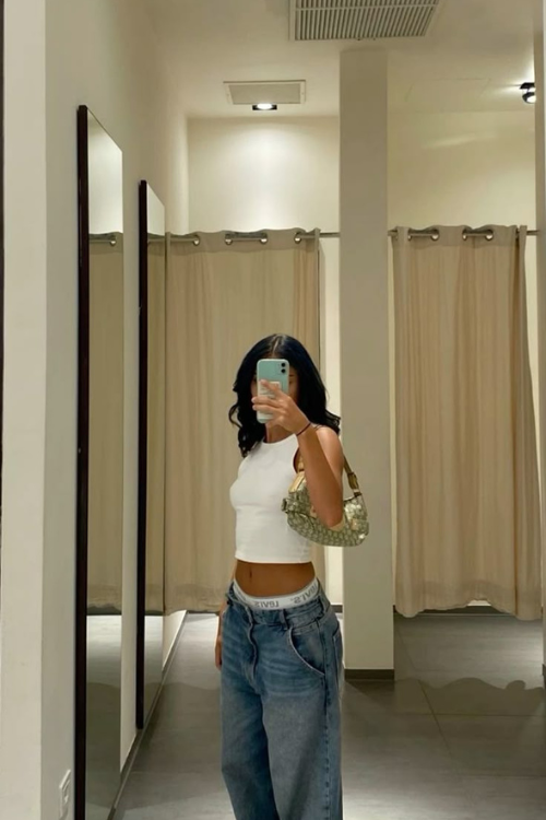 Sometimes I keep it super simple with just a crop tee and my baggy jeans. This combo screams casual cool. Adding white sneakers, a shoulder bag, or subtle jewelry instantly makes it look deliberate rather than lazy.