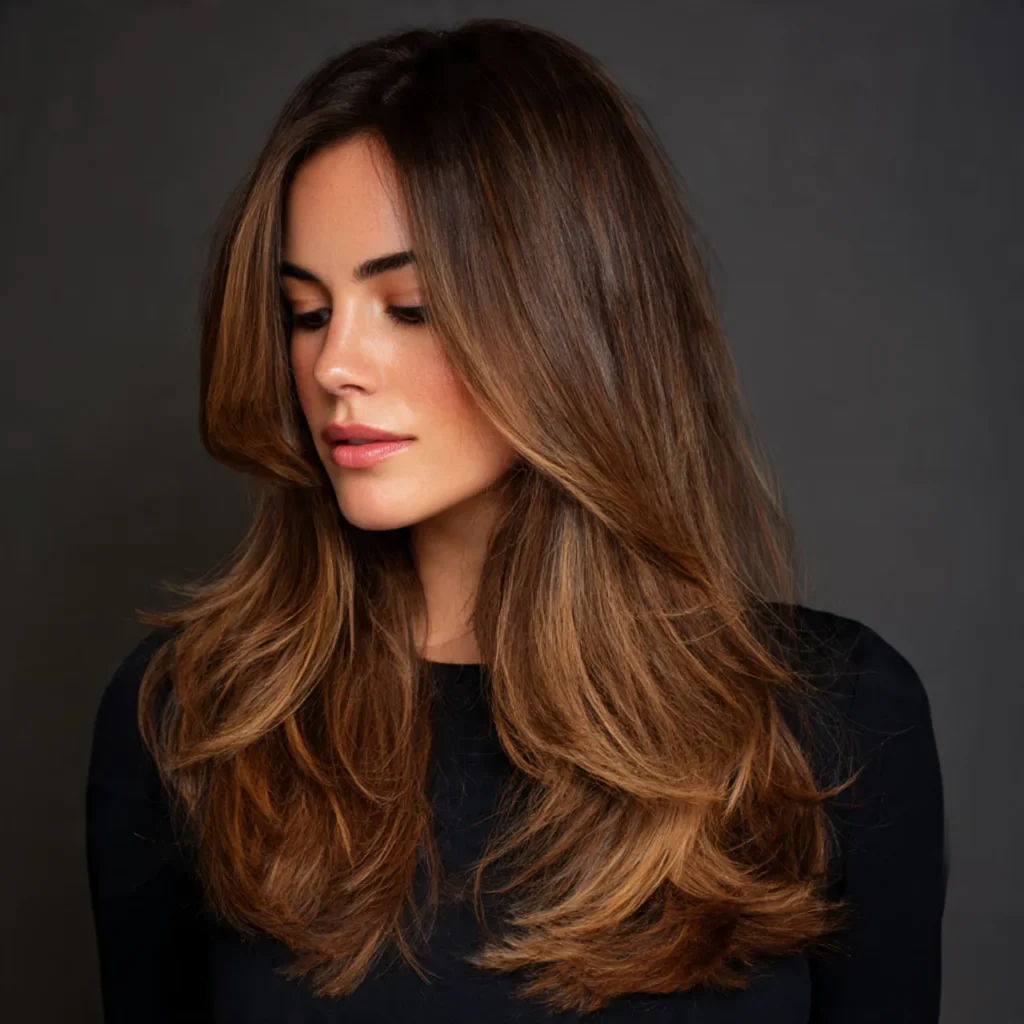 Adding warmth to long layers enhances movement. I find it makes the haircut look more defined and lively.