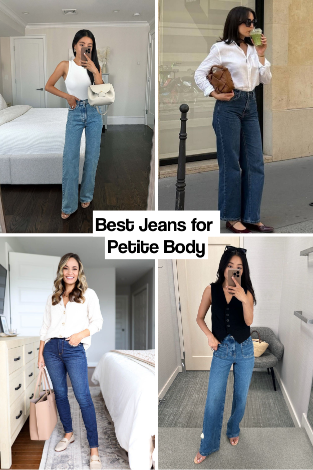 Petite frames, around 5’4″ and under, benefit from jeans that elongate the legs and overall silhouette. High-rise straight-leg and high-rise skinny jeans in dark, clean washes are ideal, with cropped ankle-length styles working well for proportion. Wide-leg jeans can be worn with heels to avoid shortening the frame. Avoid mid-rise or low-rise styles, heavy distressing, and cropped hems that cut at mid-calf. Petite-specific lines from brands like Madewell, AGOLDE, and Anthropologie provide better inseams and rise, minimizing alterations and maximizing fit.