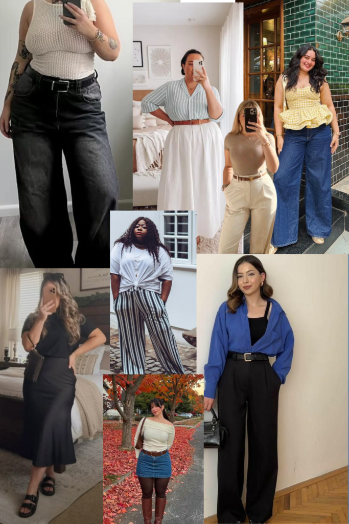 Very tight bottoms paired with tight tops can sometimes make the upper body appear heavier by comparison. Similarly, extremely clingy pencil skirts without structure may emphasize curves in a way that feels disproportionate. A useful styling idea is to wear darker shades on top and slightly lighter tones on the bottom to balance proportions. Bottoms with a thicker waistband can also help define the waistline and anchor the outfit.