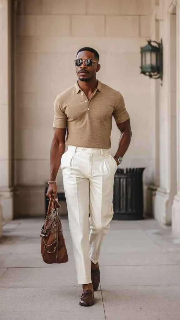 I prefer neutral chinos like beige, navy, or olive because they are easy to style. A pro tip I follow is to keep the shirt neatly fitted—not too tight or loose—so the whole look stays balanced and comfortable.