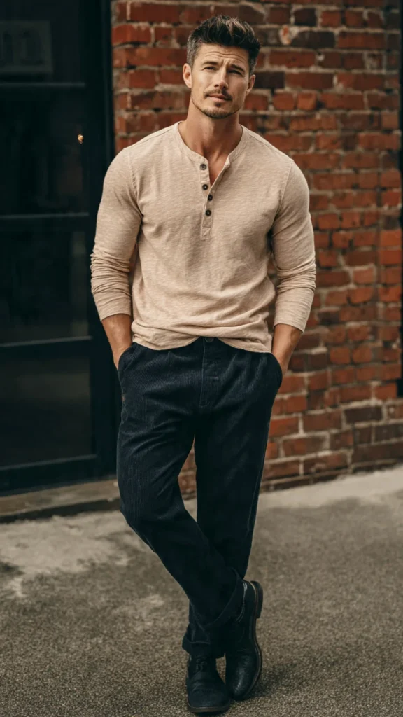 6. Henley Shirt + Dark Pants