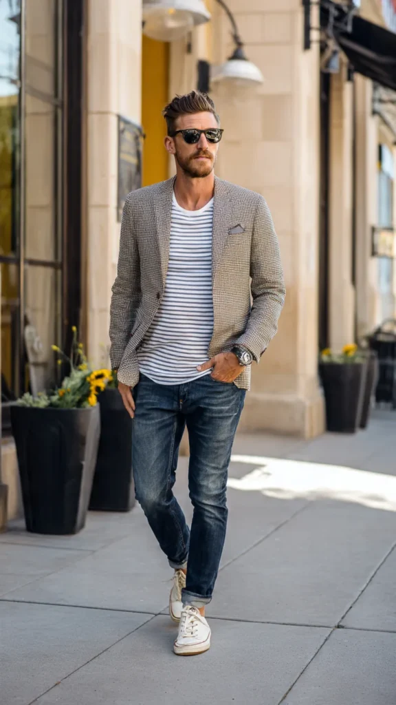 7. Casual Blazer + T-Shirt + Jeans