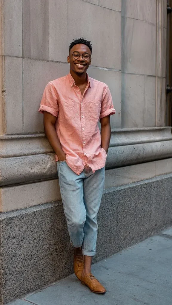 For warmer days, I prefer a short-sleeve button-down with jeans. It feels breathable and relaxed but still looks more styled than a basic T-shirt.