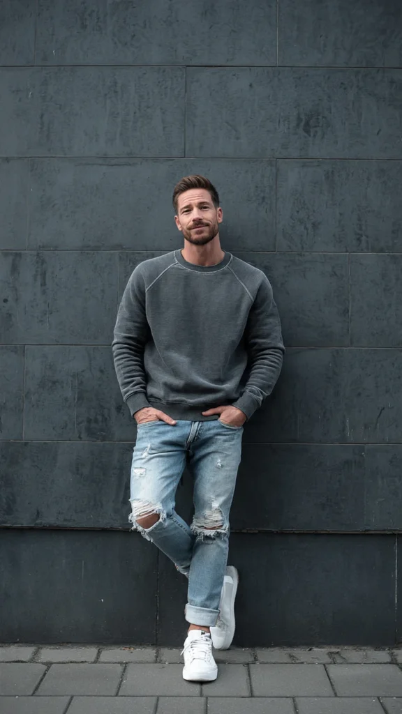 I always make sure the sweatshirt isn’t too baggy because fit is what keeps this outfit looking sharp. Clean sneakers usually complete the look perfectly.