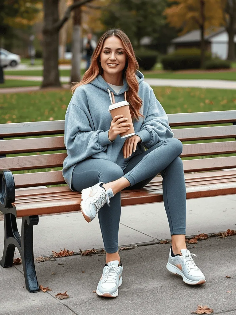 High-waisted leggings and a cozy oversized hoodie give you that “I just worked out” vibe, even if the only thing you lifted was a remote. Pair with sneakers or slip-ons, and you’re ready for errands, couch marathons, or an impromptu pumpkin spice latte run. Comfort is key, sweat optional.