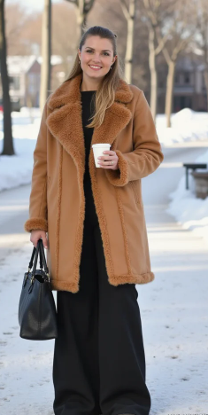 Winter coat outfits open the door to endless styling opportunities, from timeless wool peacoats with tailored trousers to oversized puffers that create bold shapes with skinny jeans. Double-breasted designs work beautifully with pencil skirts for professional polish, while teddy coats paired with leather pants lean into street-style edge.
