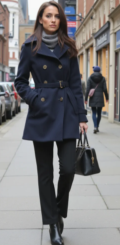 A wool peacoat combined with tailored trousers is a staple pairing that defines refined winter style. Classic colors like navy or charcoal with structured shoulders create an elegant silhouette that works just as well at the office as for an evening dinner. Slim-cut trousers maintain balance with the coat’s sharp lines, while leather shoes or sleek ankle boots complete the polished look. Adding accessories like cashmere scarves or leather gloves enhances the outfit without disrupting its timeless sophistication.