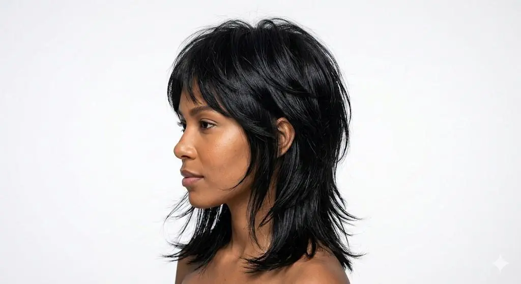 The Black Wolf Cut with Side-Swept Bangs