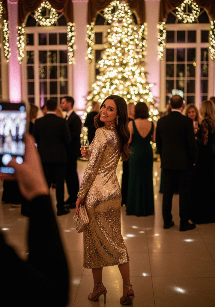 A sequin dress always stands out during Christmas. It brings sparkle to any event without trying too hard.