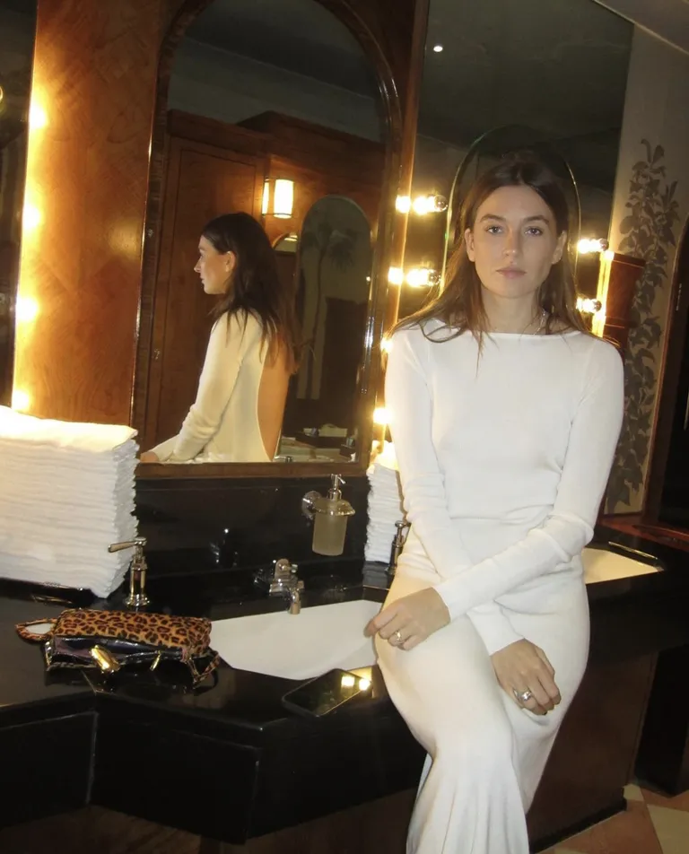 Knitted dresses are perfect for winter because you can wear them in many ways. Camille, a style influencer, shows how a knit dress with an open back looks great with a bold handbag. Adding boots completes the outfit for evening events. This dress is a good choice for a wardrobe because it can be layered up or down depending on the weather.