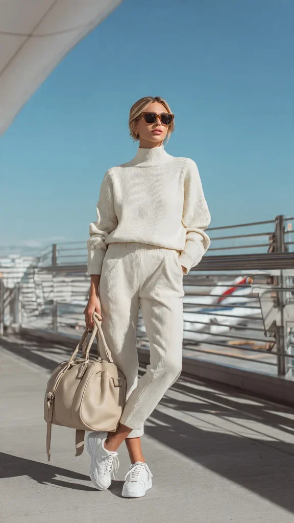 Coordinated knit sets are a lifesaver for me during transit. The matching top and pants make the outfit look intentional, while the soft fabric stretches easily and keeps me comfortable for hours. Whether I’m at the airport or on a train, this set makes packing and dressing stress-free.