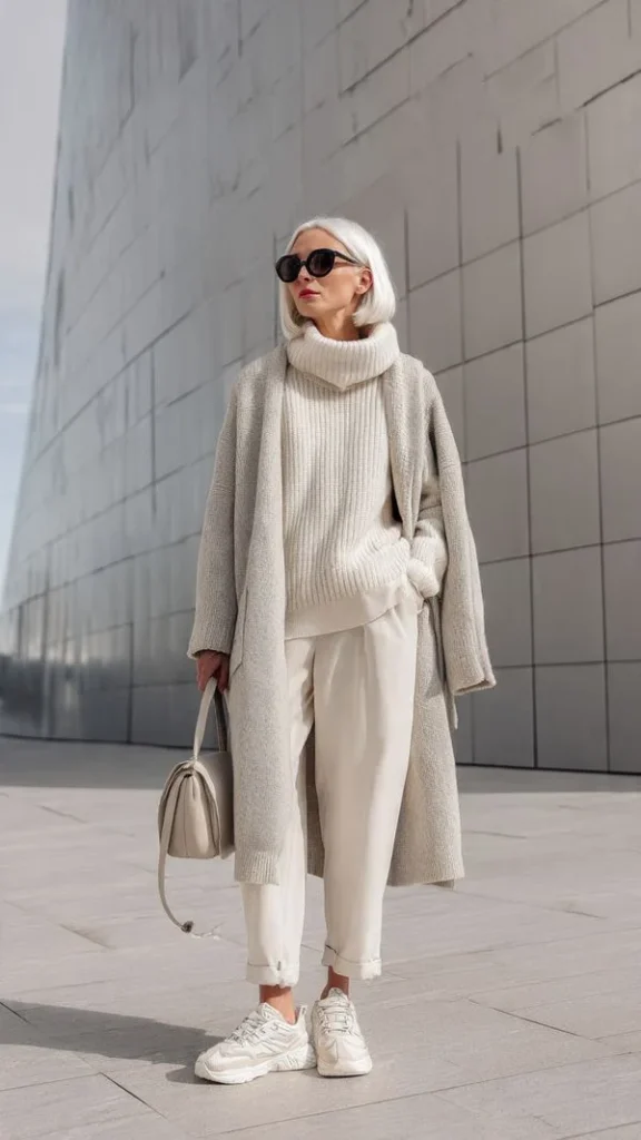 Wearing one color palette is my secret to effortless style. Monochrome neutrals make layering simple, reduce packing stress, and allow me to mix and match easily. A cardigan or scarf completes the look while keeping it versatile across different weather conditions.