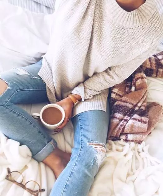 - Ripped Jeans, Plaid Scarf, and Sweater