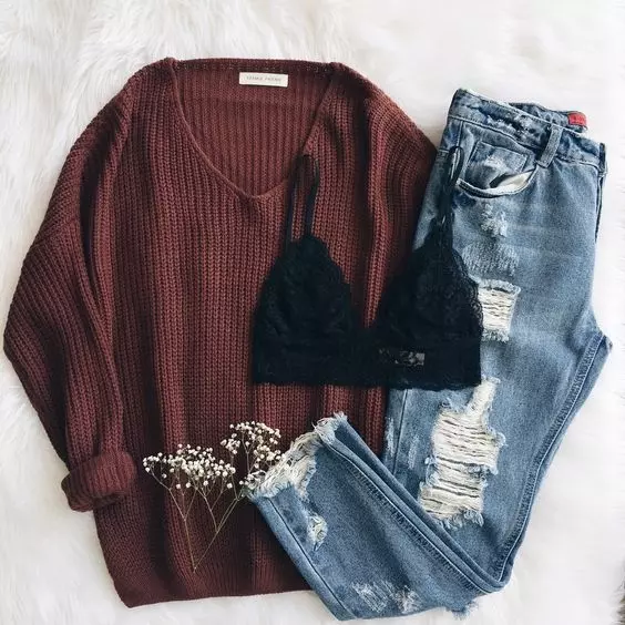 For a touch of femininity, wear a delicate lace bralette under a big, loose sweater. It’s a cozy look with a hint of style.