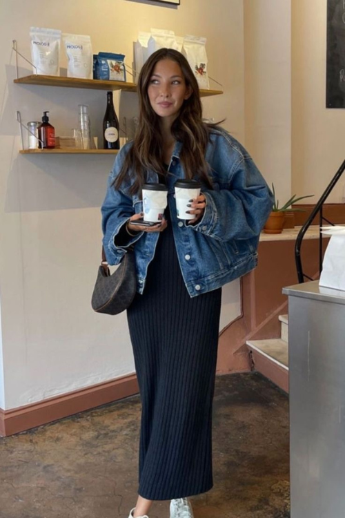 This is probably one of the easiest outfits I rely on. A denim jacket over a maxi dress instantly makes it more casual and wearable for everyday plans.