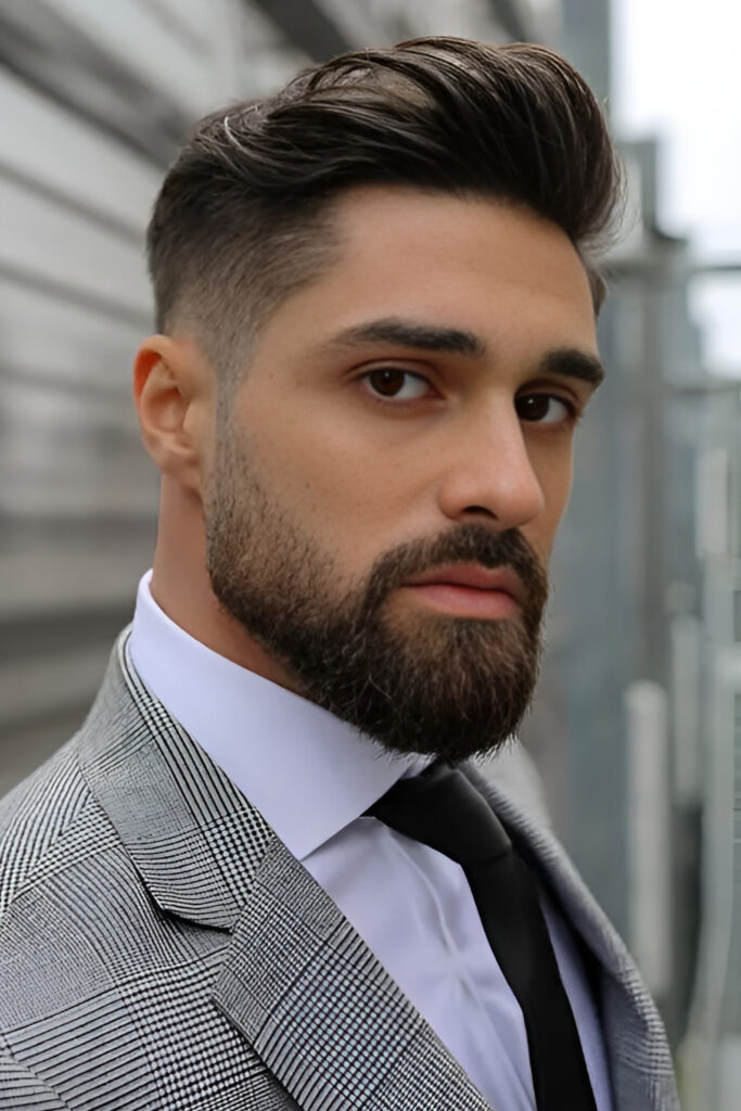 The medium beard adds balance without overpowering the hairstyle. I like this for men who want a mix of classic and modern.