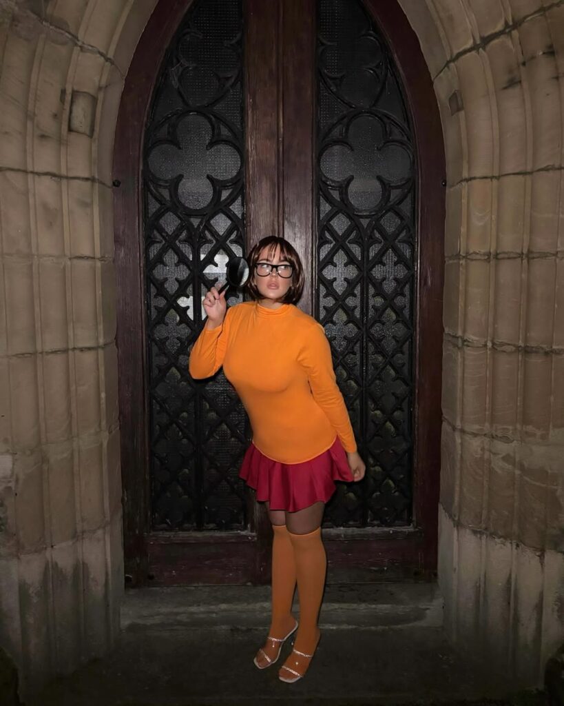 A fresh take on the classic Velma costume with vibrant colors and playful attitude. Works well in trio or duo Scooby-Doo themes, emphasizing nostalgia with a modern twist.