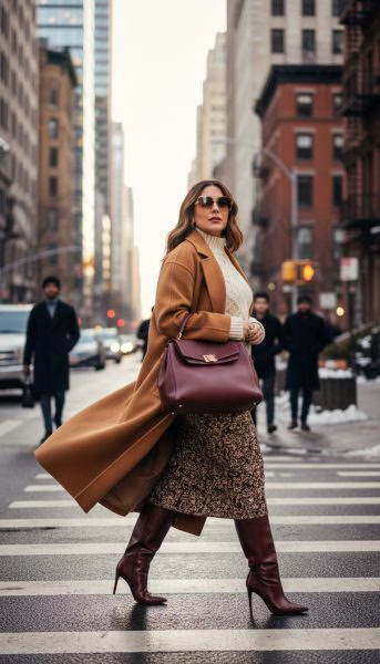 Boots help keep your legs and feet warm while adding style. Knee-high boots or ankle boots with sturdy heels work well in winter.