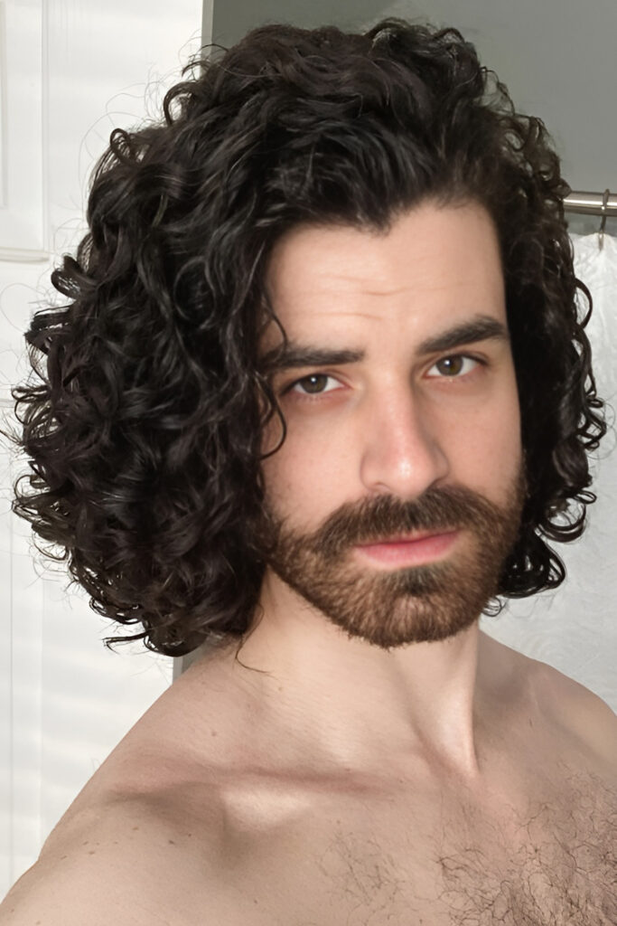 This combo works really well when I want contrast. The volume from curls stands out, while a short beard keeps the face from looking too heavy.