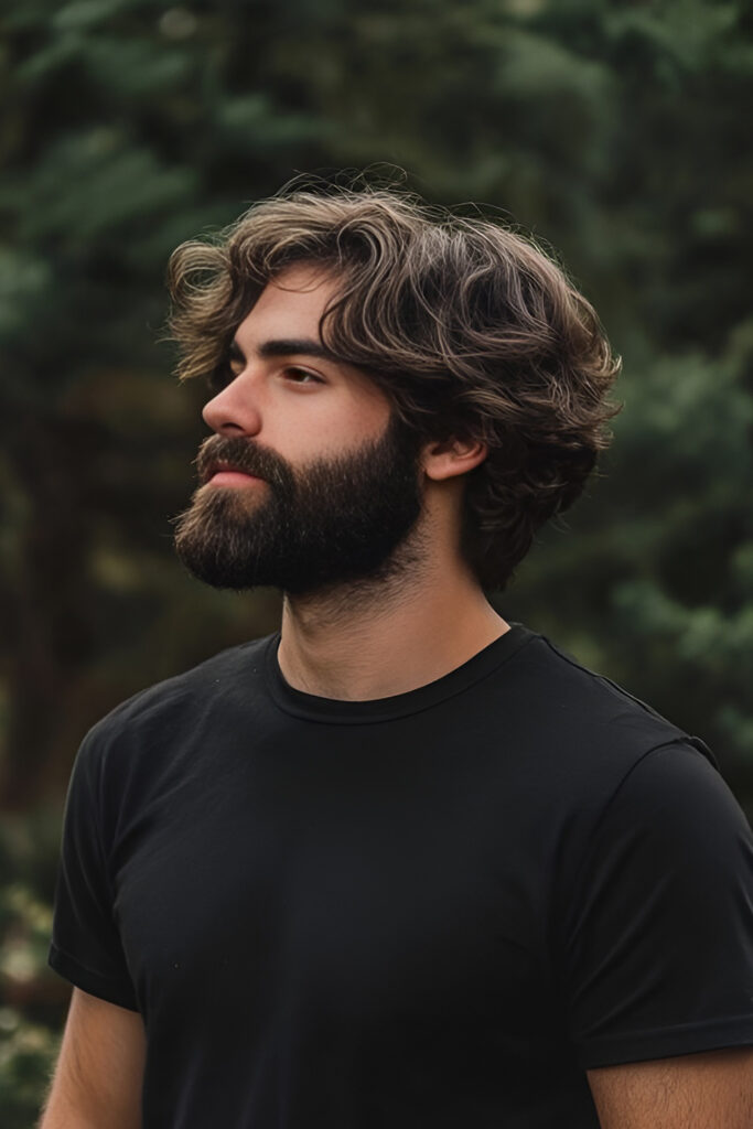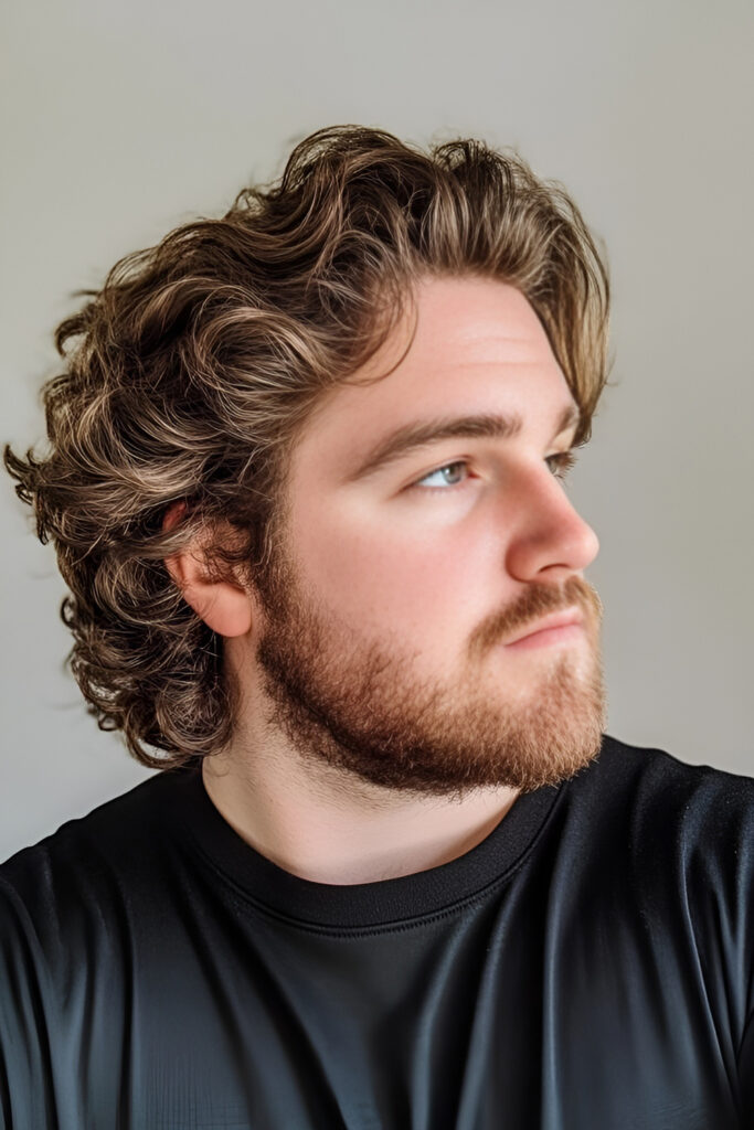 This style is all about volume. The curls bring personality, while the full beard keeps everything grounded.