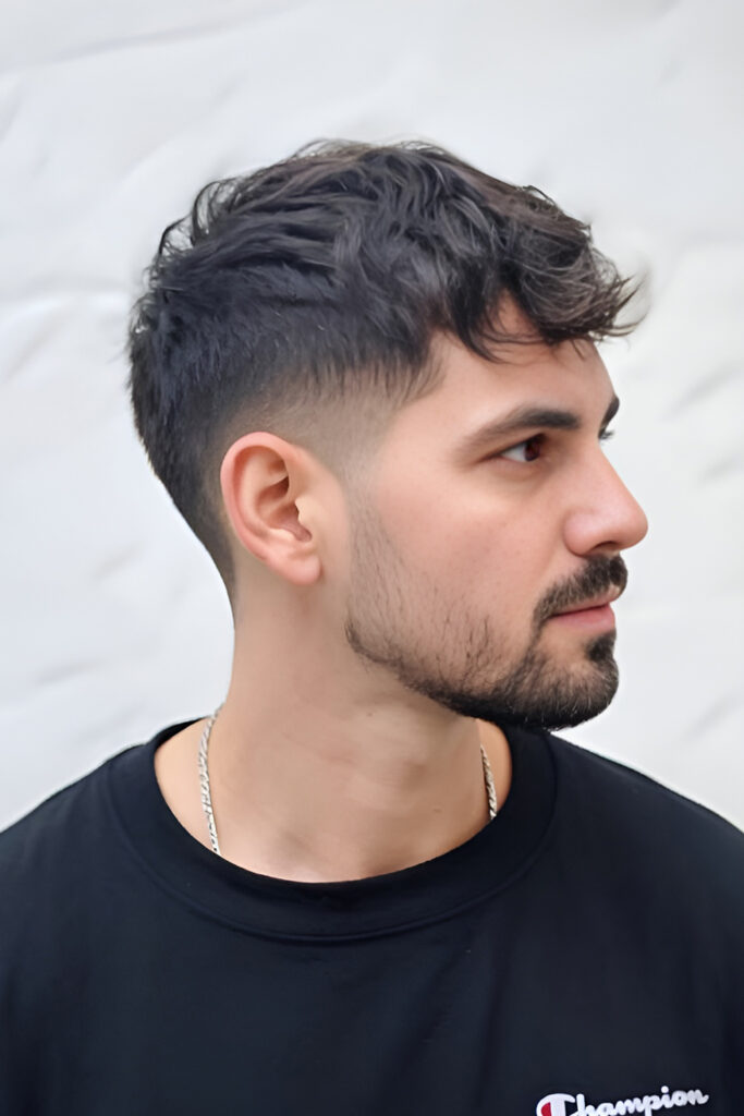 This combines volume with a clean fade. It looks stylish but still wearable.