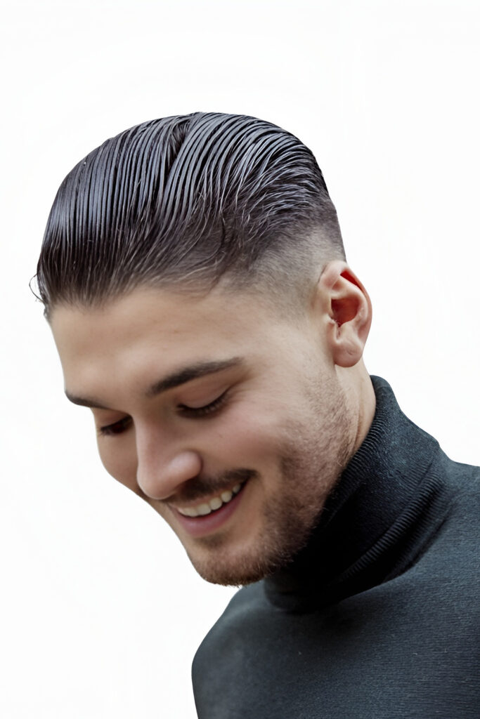 The slick back is all about a smooth finish. I prefer using lightweight products so the hair doesn’t look greasy.