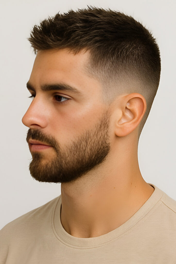 I think the crew cut is ideal if you want something slightly styled without extra effort. It keeps the sides short while leaving just enough length on top.