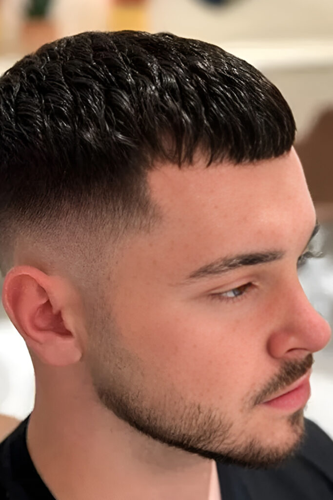Short Caesar Haircut with Skin Fade on the Sides