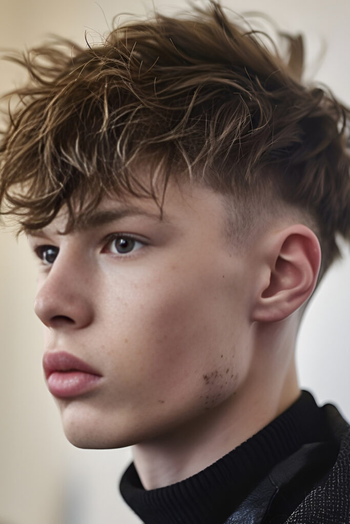 The high fade version gives a very clean and striking look. The sides are cut short near the temples, making the top stand out more.