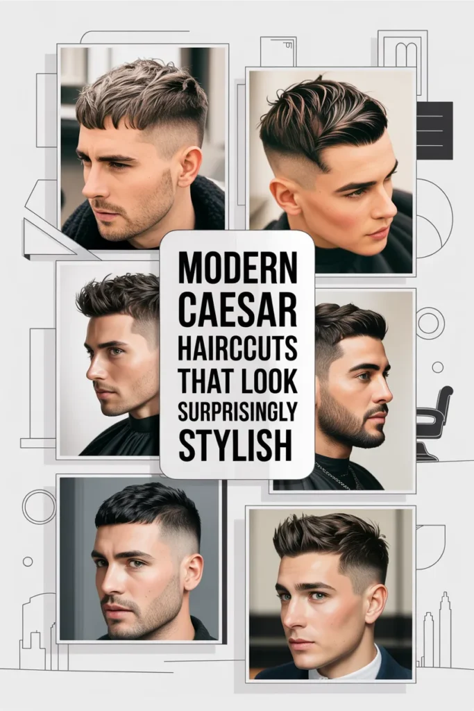 • Modern Caesar Haircuts for Men now include fades, texture, and layered styling