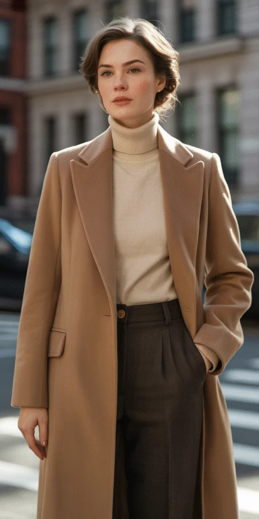 A camel coat embodies understated luxury and versatility. Neutral tones harmonize with most winter palettes, making it an investment piece for years.