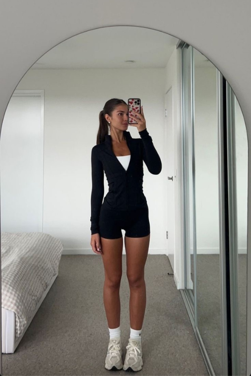 18. fitted zipper jacket + crop top + leggings