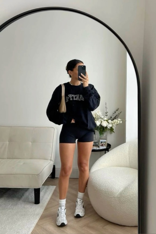 21. oversized sweatshirt + cycling shorts