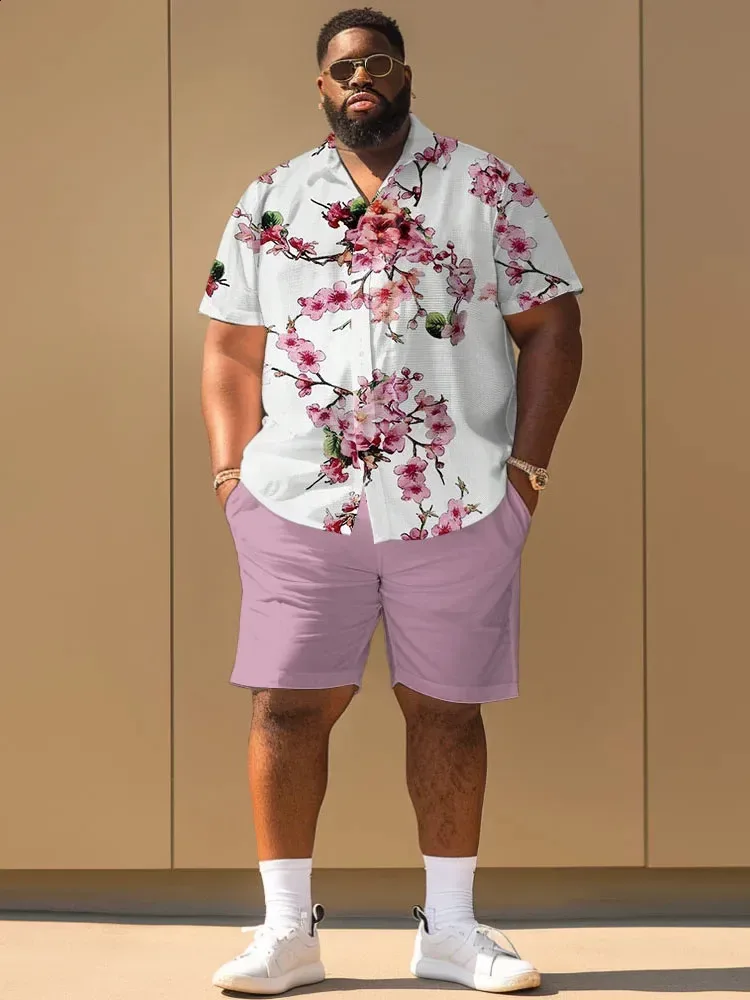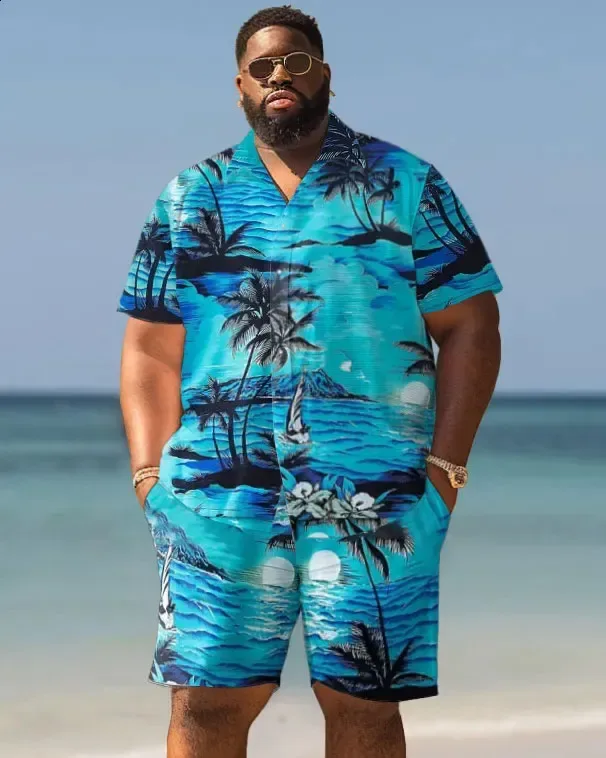 Bold Tropical Graphic Tee With Vibrant Beach Shorts