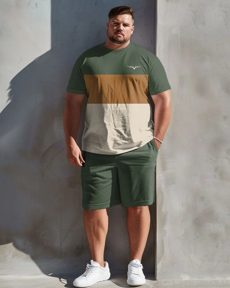 Earth-Tone Colorblock Outfit for Plus-Size Men