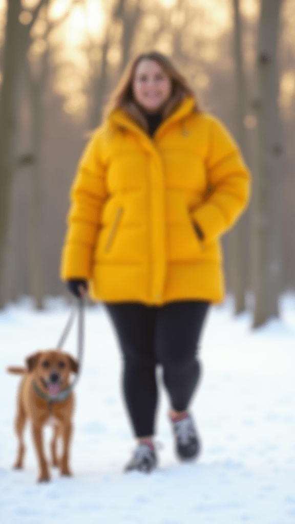 Puffer coats are the ultimate winter practical piece, and a bright color like yellow helps you stand out in snowy weather. Wear yours with black leggings and sneakers for a sporty, casual vibe that’s both warm and eye-catching. It’s the perfect way to add fun to your winter wardrobe while keeping comfort a priority. This bold coat is a must-have for playful Plus-Size Winter Outfits.