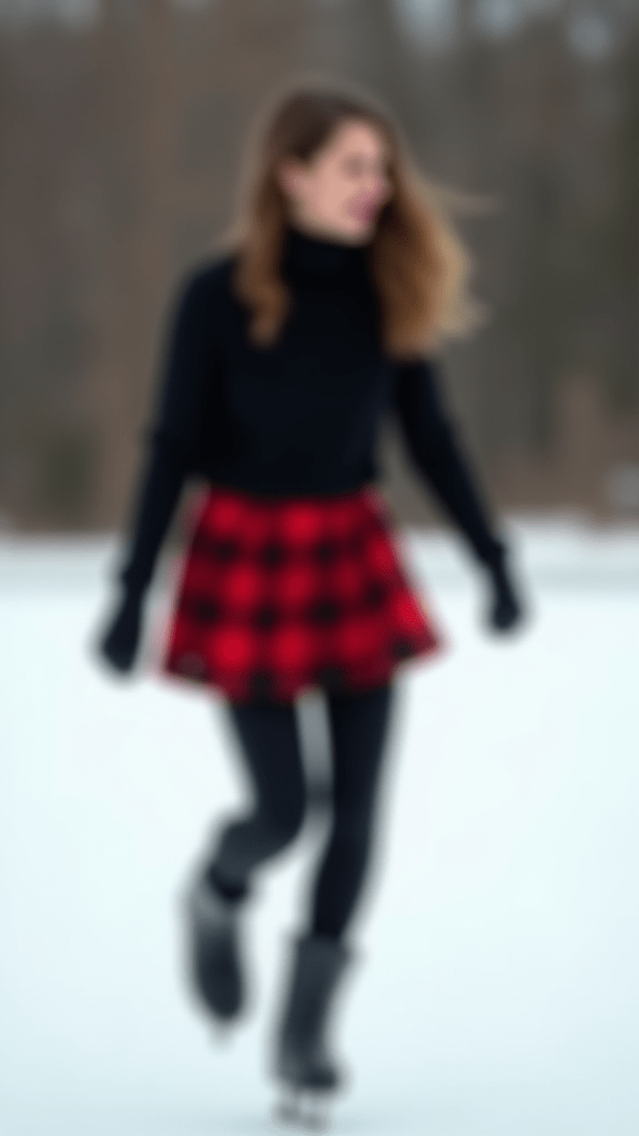 Channel a ’90s vibe with a flirty plaid mini skirt and warm tights combo. Perfect for ice skating or any chilly outdoor date, this look keeps you stylish and snug. Bonus points if your date’s clinging to the rink walls as much as you are!