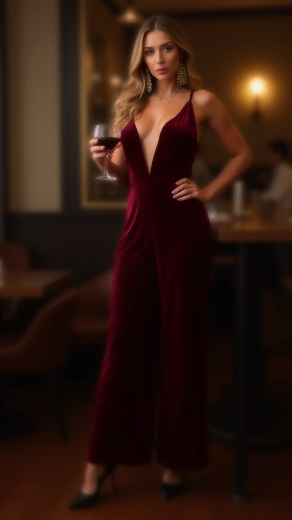 Who says jumpsuits are just for lounging? This velvet jumpsuit is an adult’s dream — soft, inviting, and perfect for a Romantic Winter Date. The rich fabric begs to be touched (maybe wait till after dinner though). Style it with high heels to elongate your legs and give yourself that extra wow factor. Just watch out for wine spills — velvet and red wine don’t mix well!