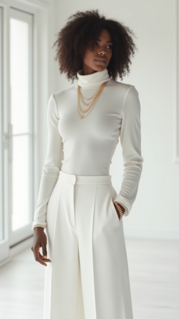 Monochrome Turtleneck and Wide-Leg Pants