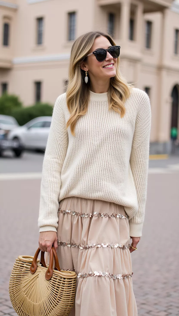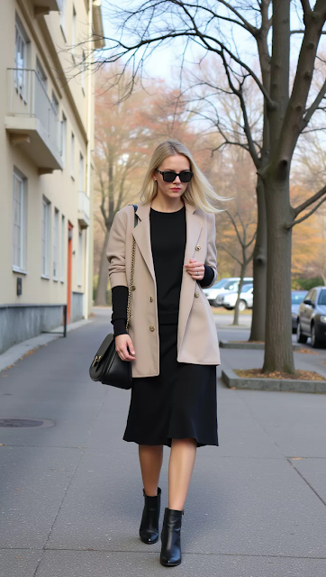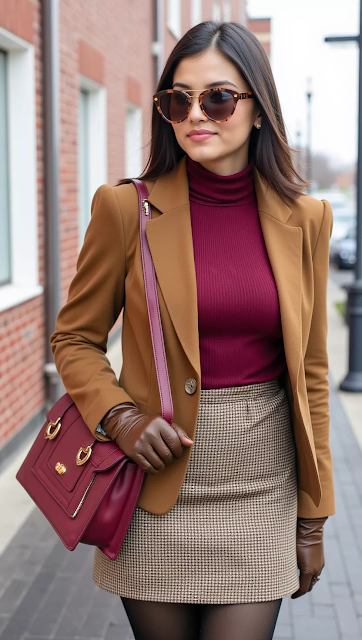 Adding the right accessories can transform even minimal pieces. A wide-brim hat, patterned scarf, or classic crossbody bag instantly elevates your outfit without extra effort. Autumn shades like mustard, burgundy, forest green, and burnt orange highlight the season beautifully while keeping the look stylish and appropriate. Playing with textures such as suede, velvet, or chunky knits gives your outfit more dimension. And when the night gets brisk, a tailored wool blazer or a structured trench coat keeps you comfortable without losing that refined edge.