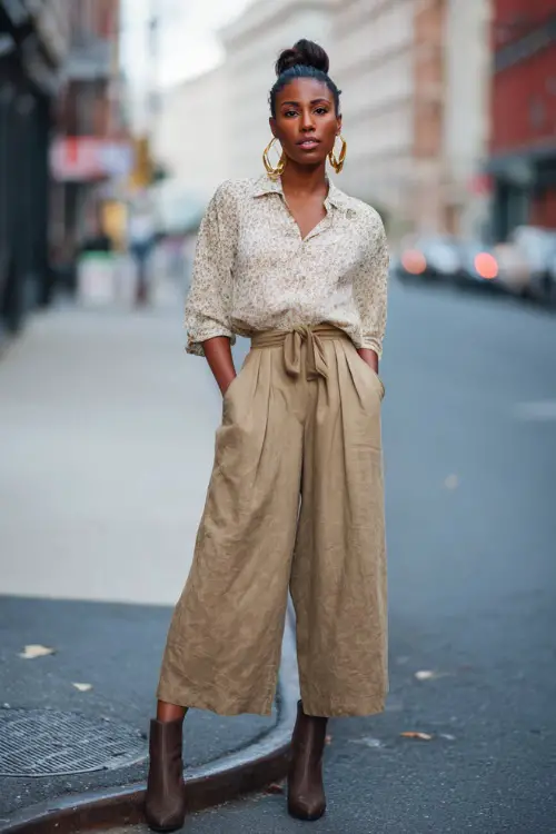 7. Boho Blouse with Tailored Cropped Pants
