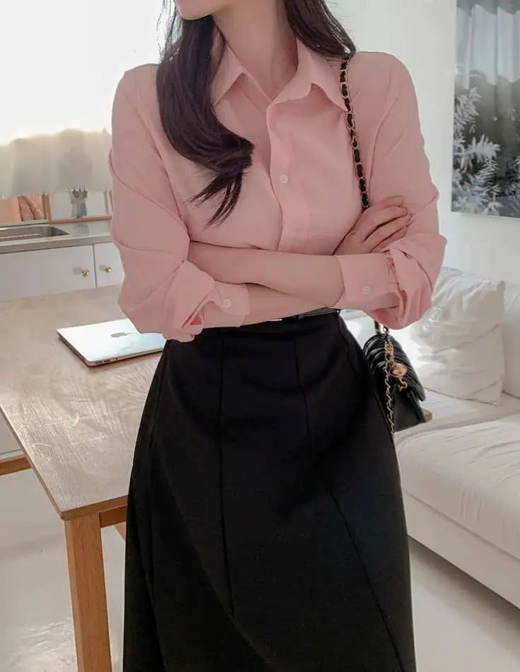 Blush Pink Blouse with Black Skirt