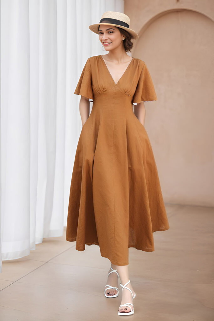 Fit-and-flare dresses are a favorite because the fitted bodice highlights my waist and bust, while the skirt flows over the hips. It’s one of the most flattering silhouettes for summer. Light fabrics like cotton and linen make it breathable, and soft pastels or neutral prints keep it versatile. I pair it with espadrilles or flat sneakers for a polished look that’s effortless.