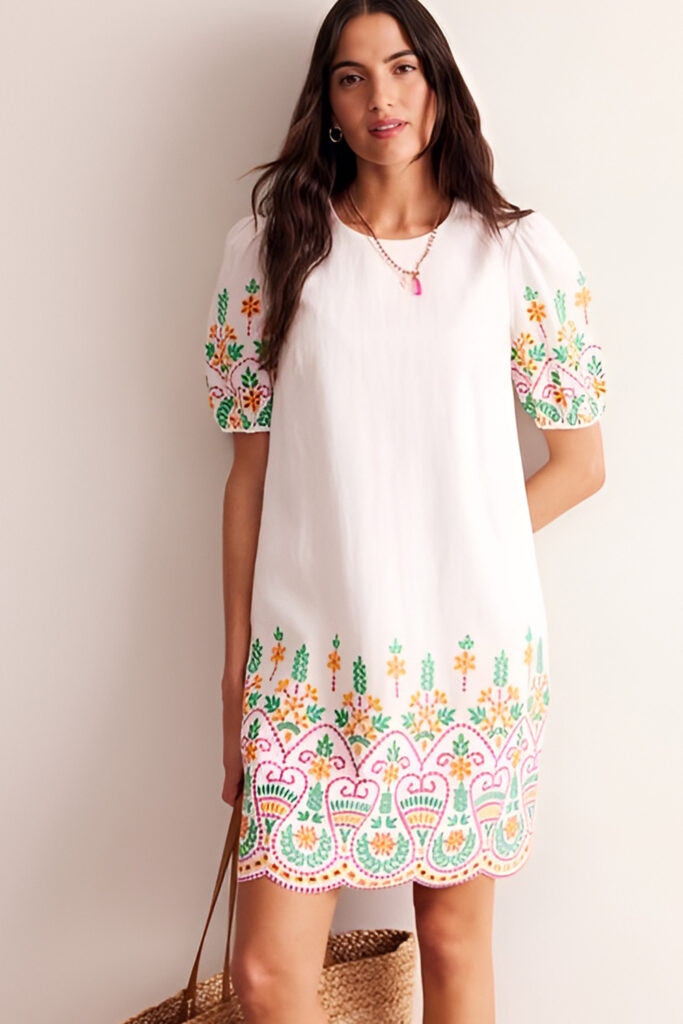 I reach for linen shift dresses with vertical details when I want a flattering, elongating effect. The straight cut allows airflow and keeps me comfortable, while vertical lines make my figure appear slimmer. Neutral and pastel tones make it versatile, and pairing it with flats or slides adds effortless polish.