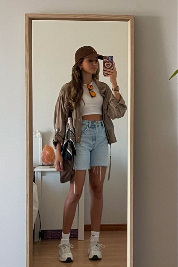 A better approach is choosing a crop that barely sits above the waistband so the outfit feels connected rather than divided. Keeping the gap minimal allows the waist definition to remain while maintaining a smooth vertical line that helps the body appear taller.