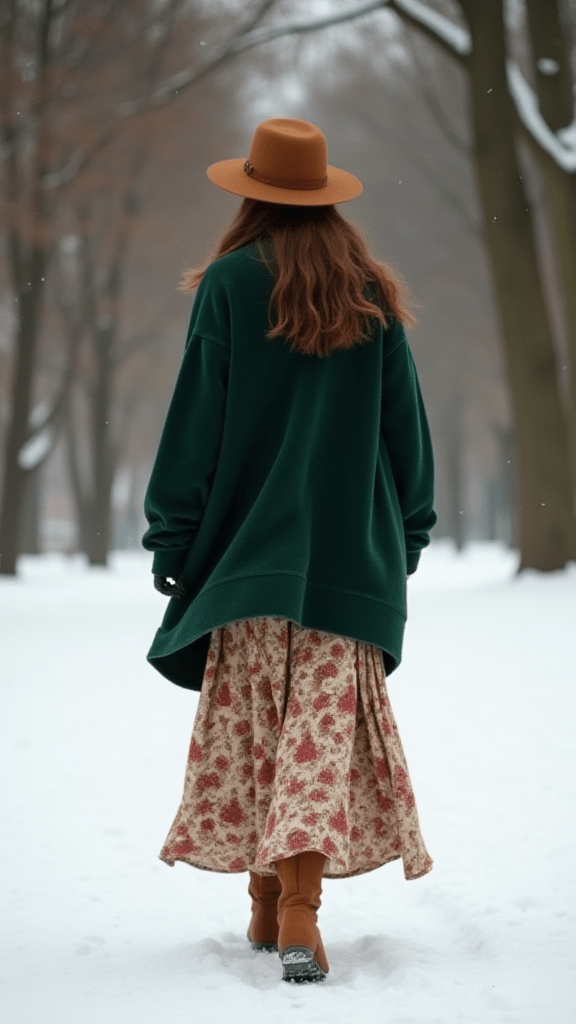 Bring your favorite summer piece into the colder months by pairing a maxi skirt with a thick, chunky cardigan. It’s a look that blends boho comfort with winter practicality. Add ankle boots and a wide-brimmed hat for effortless style. Mixing prints, such as floral with subtle stripes, keeps your Warm Winter Outfits creative while maintaining a cohesive color palette.