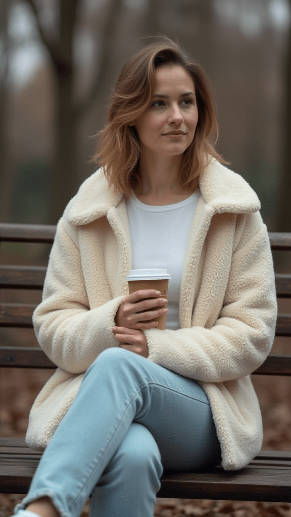 The teddy coat is the ultimate symbol of cozy-chic. Soft, plush, and timeless, it pairs beautifully with wide-leg jeans for a relaxed yet fashionable fit. Add sneakers for daytime comfort or boots for an evening-ready twist. Choose rich shades like camel, forest green, or deep brown to keep your Warm Winter Outfits on trend while staying snug.