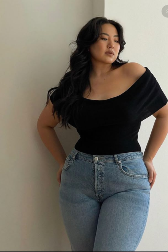 Necklines play a huge role in shaping your upper body. A V-neck, scoop neck, or square neckline elongates the torso and subtly slims the arms. Off-the-shoulder tops highlight the collarbone, drawing attention away from the arms. Accessories can enhance this effect: a layered necklace with a V-neck or bold earrings with off-the-shoulder tops directs focus to your face. Avoid high crew or boat necks with tight sleeves, as they can make your arms look wider.